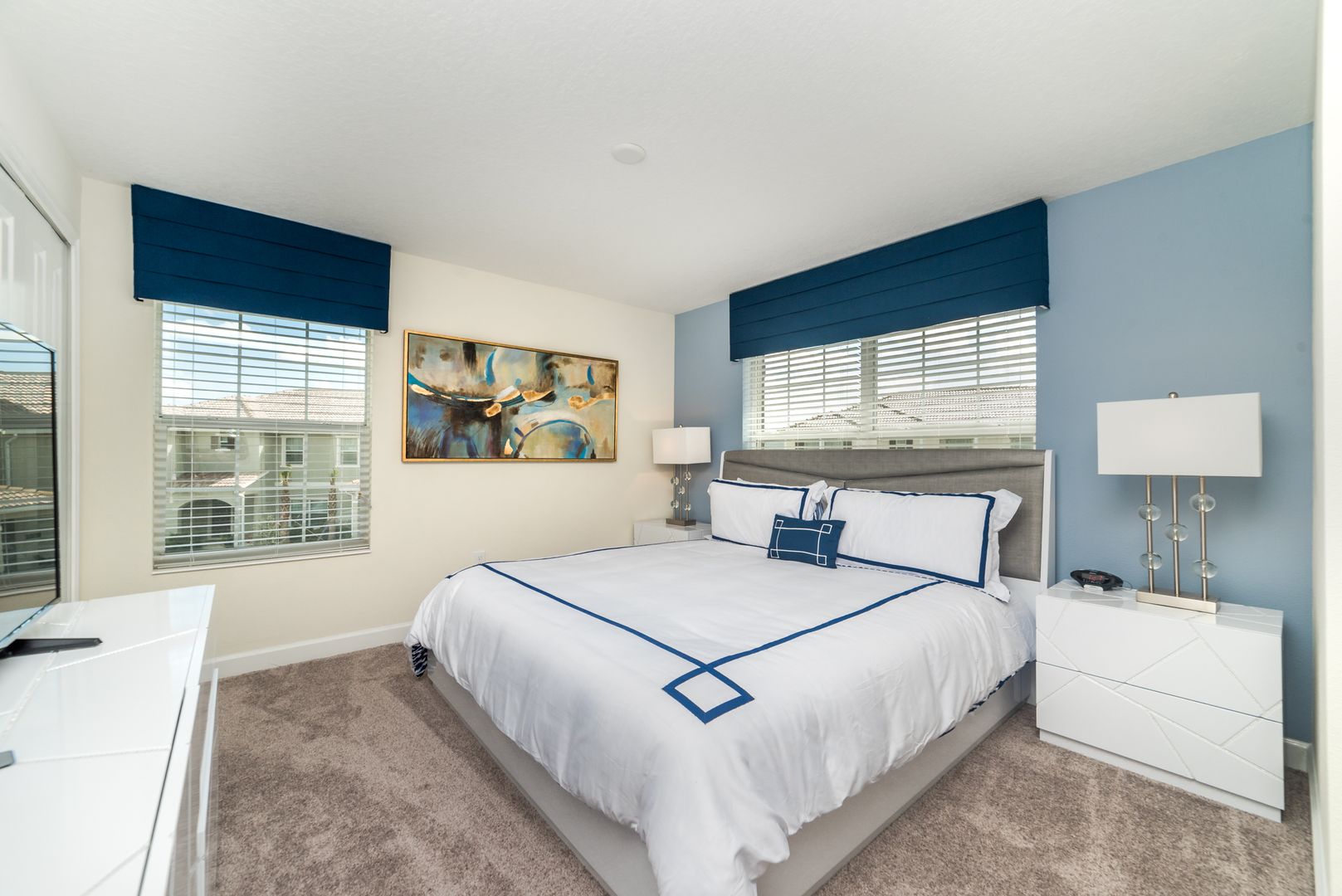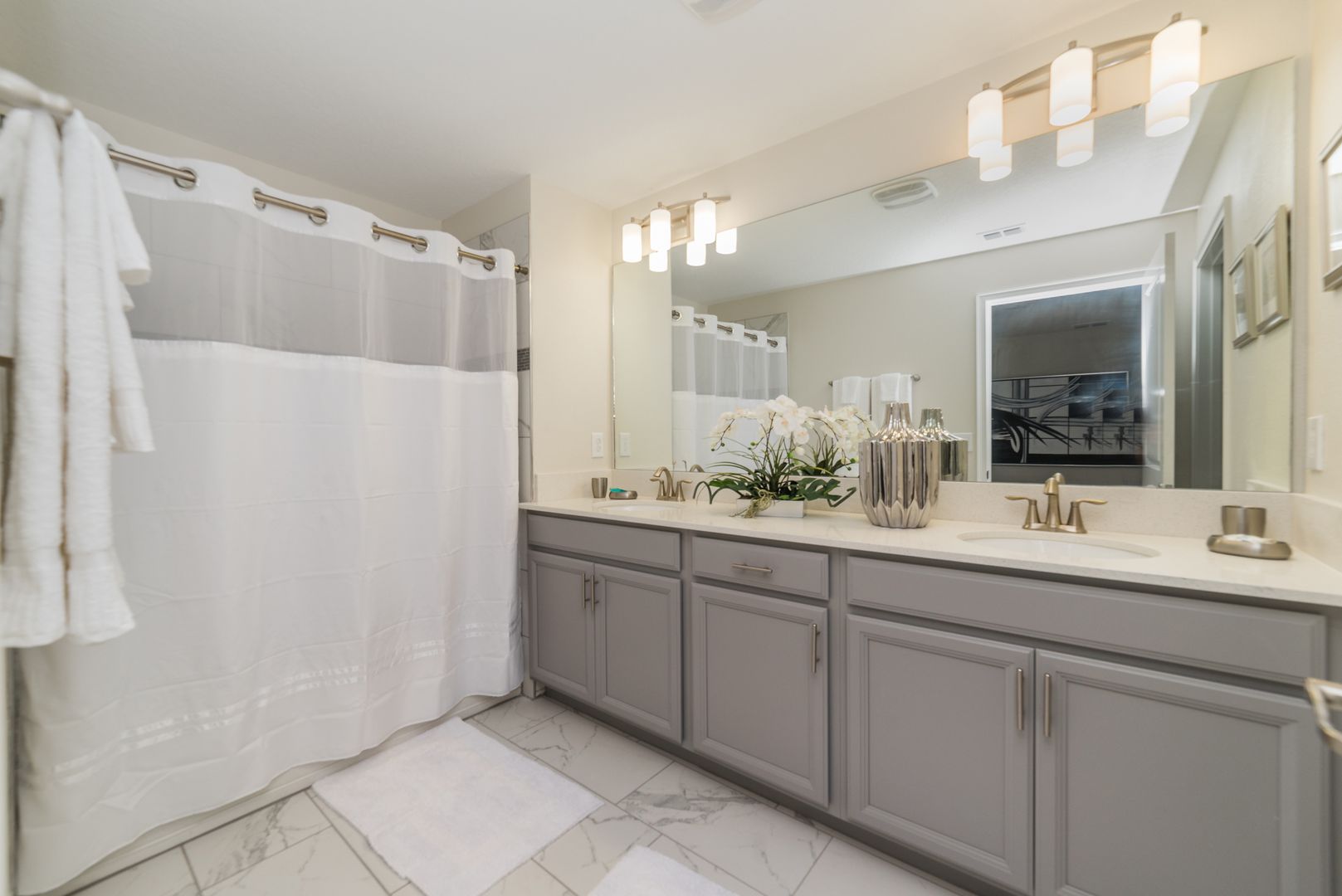 FULLY FURNISHED 5 bedroom, 4 baths Townhome offers a modern open concept design, perfect for gatherings and quality family time! The kitchen features granite counter tops, stainless steel appliances and elegant cabinetry. All bedrooms offer flat screen tvs and Free internet/ basic cable is included for your convenience. The home is also equipped with a washer and dryer. This fantastic town-home features a refreshing private pool located out back which can be heated.  The Storey Lake Resort is perfectly located in Kissimmee Florida in Osceola county and on the boarder of Orange county, less than 4 miles from Disney attractions and right next to Lake Buena Vista Outlets, with access to I-4, 536, and 417 near by. Enjoy the RESORT STYLE CLUBHOUSE with an incredible lagoon style pool, water slide, lazy river, tiki bar, along with mini golf, tennis courts, sand volleyball court and lakefront with a fishing dock and canoe/kayak launch.